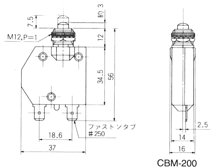定格電流の200% の電流(抵抗負荷)を通電した場合の遮断、復帰能力は3,000回以上。 |