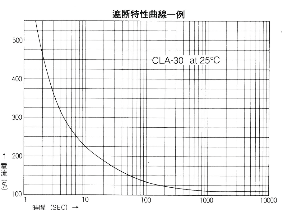 | 定格電流の130 %で1時間以内に遮断すること。 |
