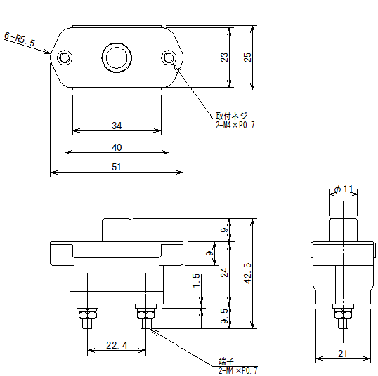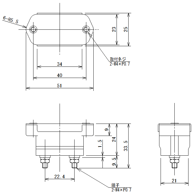端子と金属取付部間、DC500Vメガーにて100MΩ以上 |